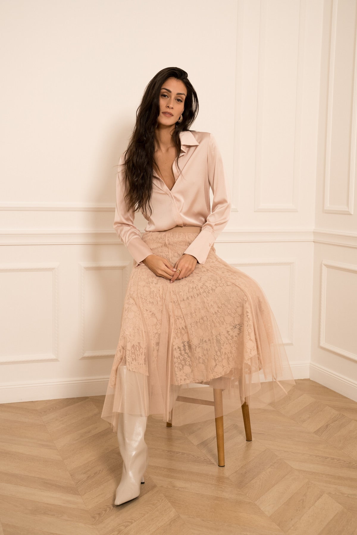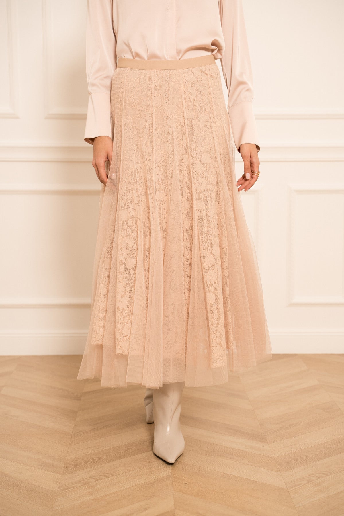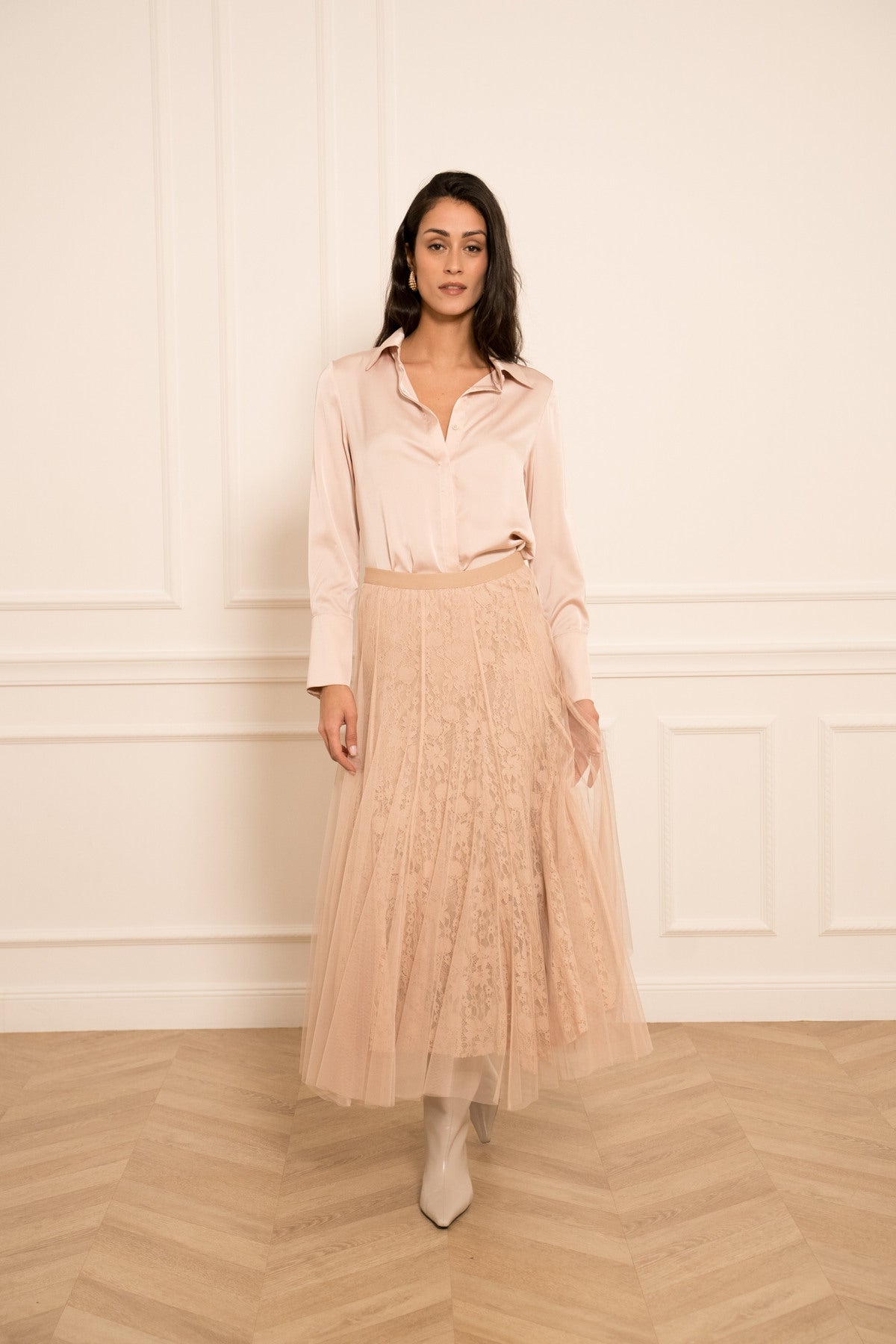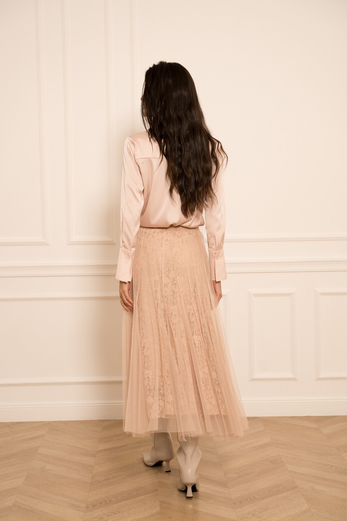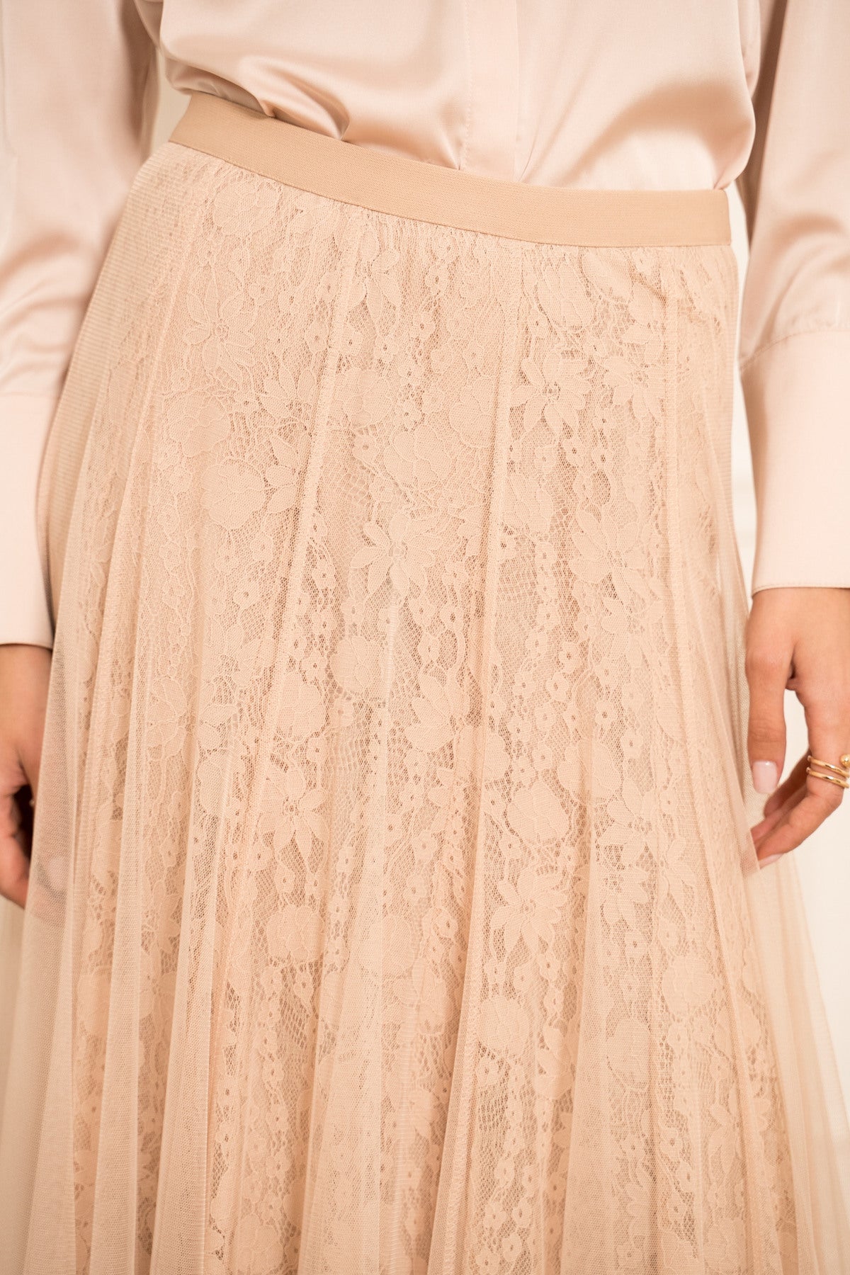 DUGA SUKNJA OD TILA I ČIPKE-TAMNOROZA